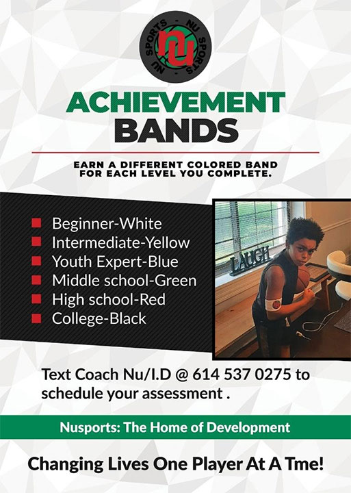 There are 6 skill levels of training and achievement at NuSports Academy. The Levels range from Beginner to College. As each student progresses in their drills and completes each level, they will be awarded a colored arm band that represents their current level of achievement.